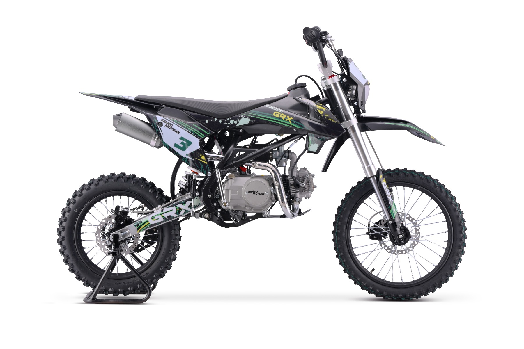 A Beneo Motors Cross GRX 125cc egy masszív motocross modell, amely ideális egyensúlyt nyújt teljesítmény, irányíthatóság és biztonság között. 12 éves kortól ajánlott tinédzserek és legfeljebb 75 kg-os felnőttek számára, akik megbízható motort keresnek szabadidős vagy sportos terepezéshez.