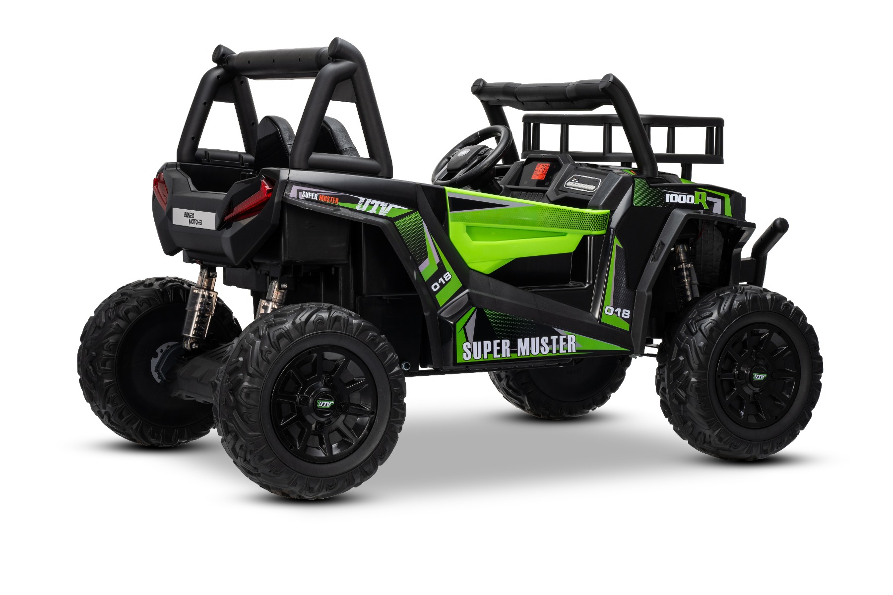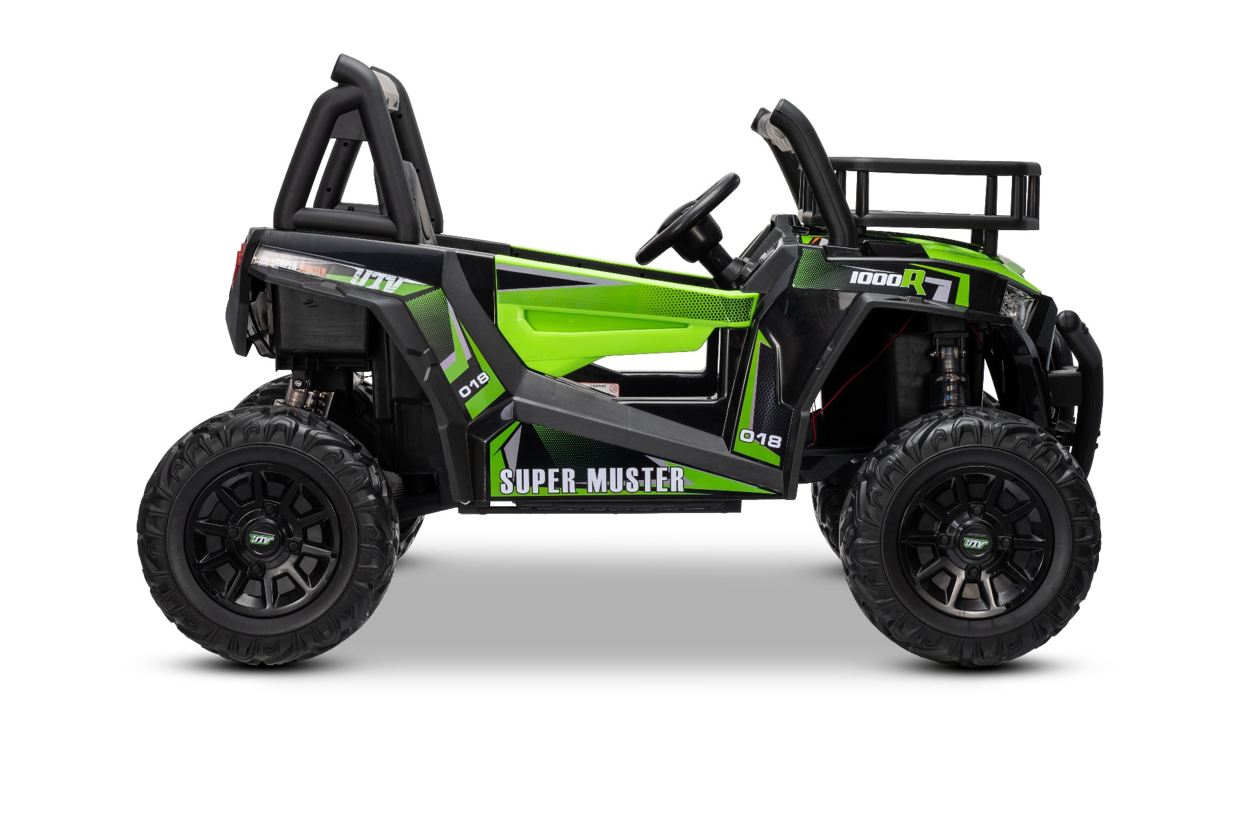 Az UTV kisautó robusztus megjelenésű, nyitható ajtókkal, 2 tárolóhellyel, kiváló minőségű anyagokkal és kidolgozással rendelkezik. Két műbőr ülés található benne, így két gyermek számára is alkalmas.