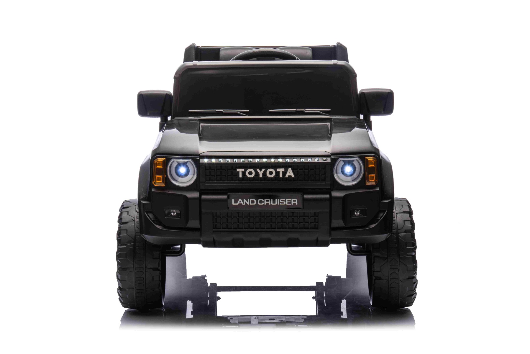 Elektromos kisautó Toyota Landcruiser 12V, fekete színben, széles egyszemélyes ülés, 2,4 GHz távirányító, USB / AUX bemenet, Bluetooth, felfüggesztés, lítium akkumulátor, LED világítás, 2 x 25W motor, EREDETI licenc