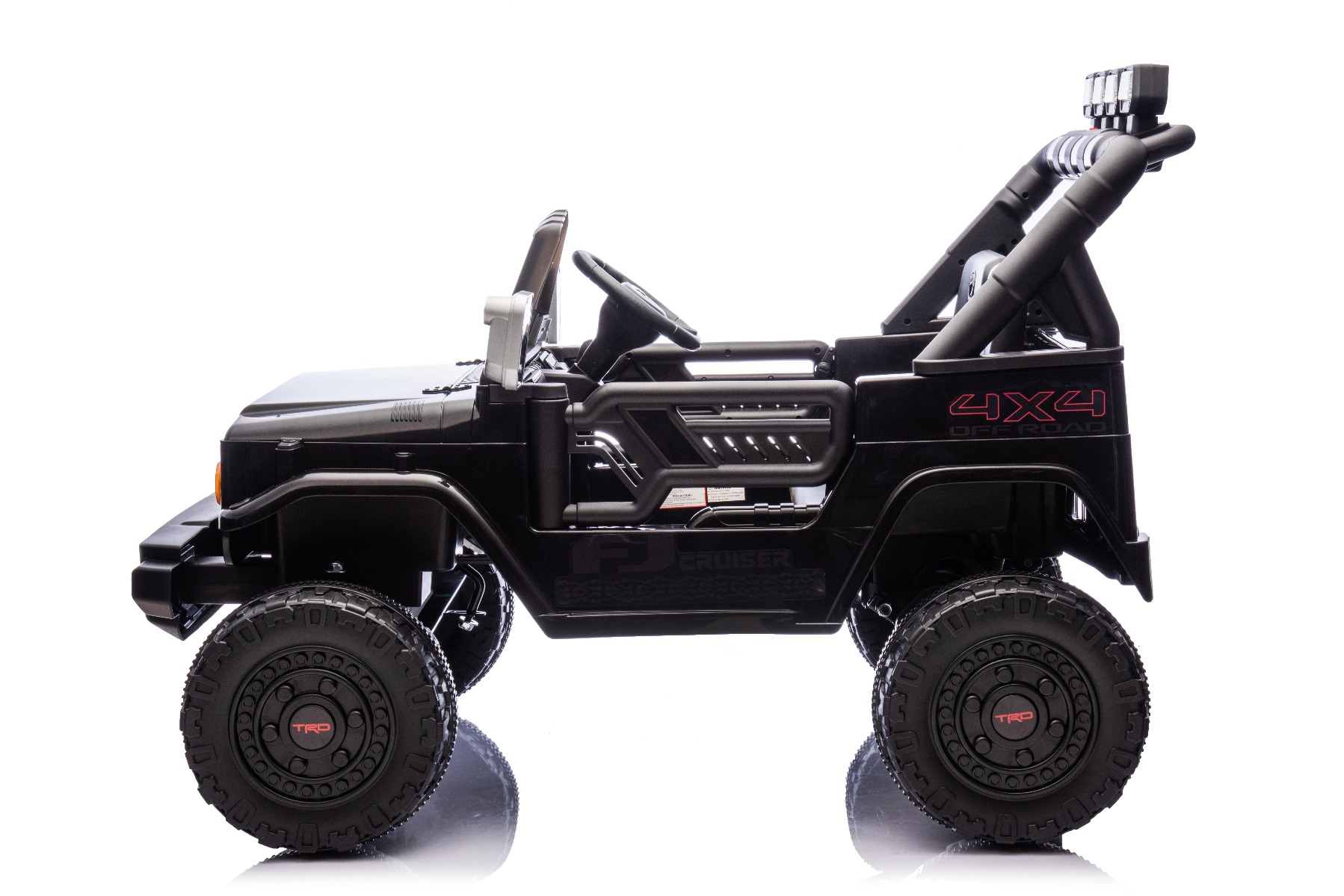 Elektromos Toyota FJ Cruiser XXL autó 4x4 hajtással, licencelt (Kétszemélyes), fekete, Hordozható lítium akkumulátorral, Magas alvázzal, Két üléssel, Hátsó tengely rugózással, 2,4 GHz-es távirányítóval, MP3 lejátszóval Bluetooth kapcsolattal, LED lámpával